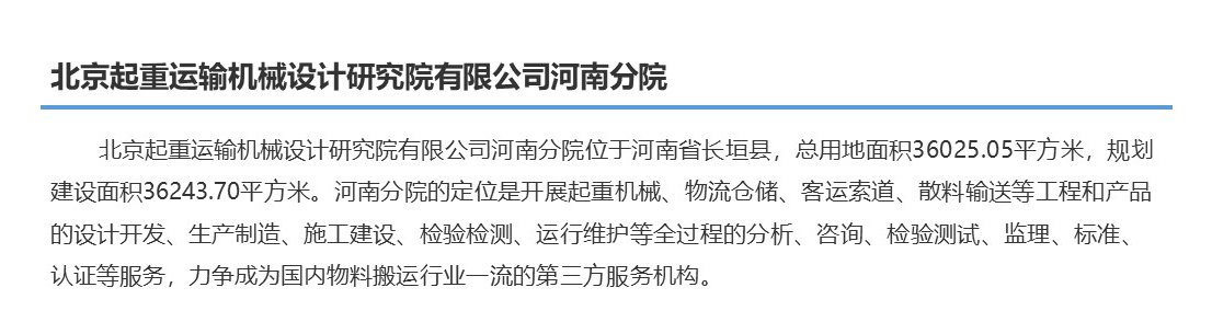 成立于1958年,由原機械工業(yè)部直屬的國家起重運輸機械行業(yè)技術歸口研究所發(fā)展成為集科研、設計、生產(chǎn)制造、安裝調試、工程承包、檢驗檢測、咨詢監(jiān)理服務為一體的國有科技型企業(yè)。